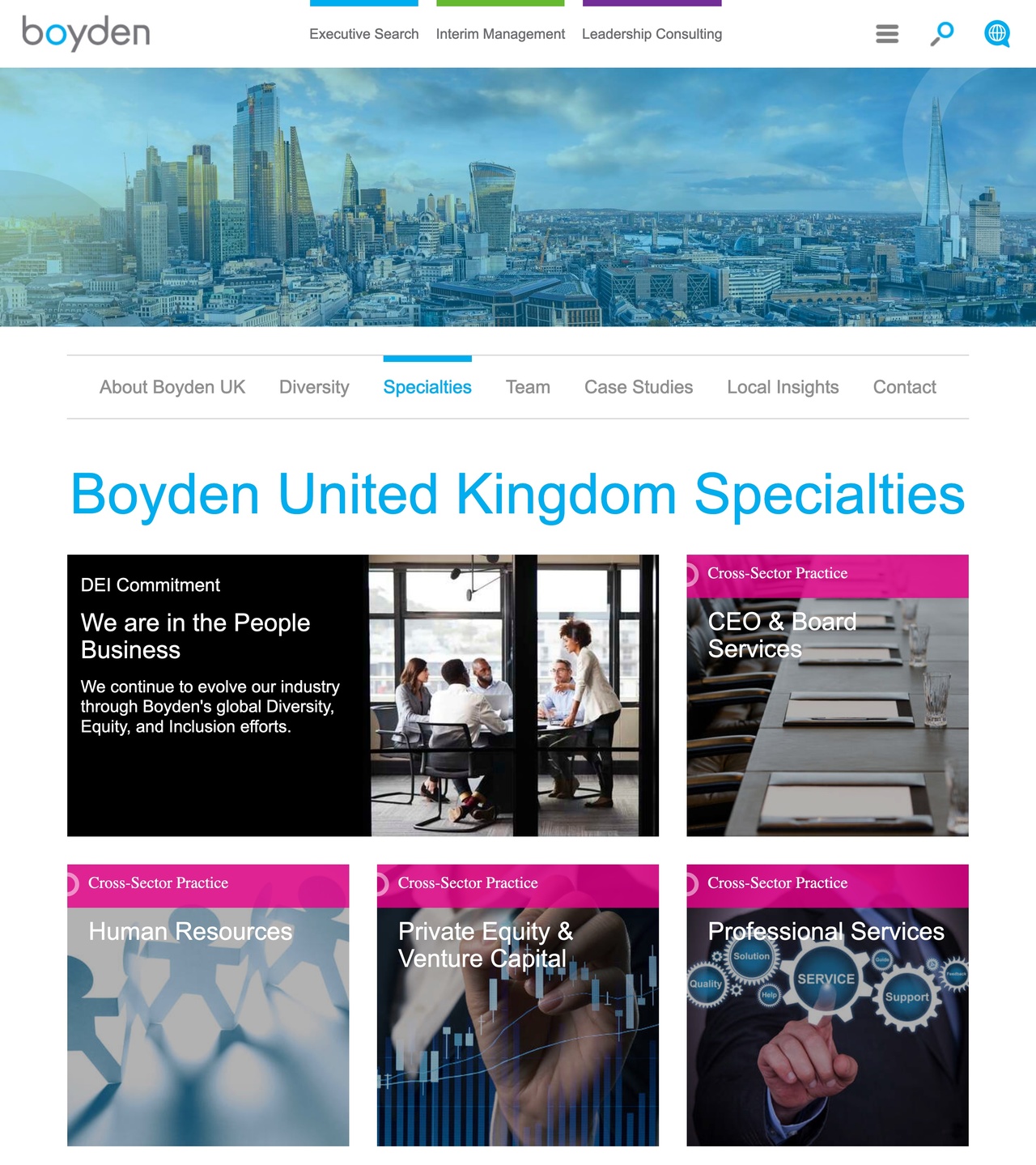 In addition, Boyden is able to easily promote information from the main corporate site to the individual micro-sites and vice versa; micro-sites are supported in multiple languages.